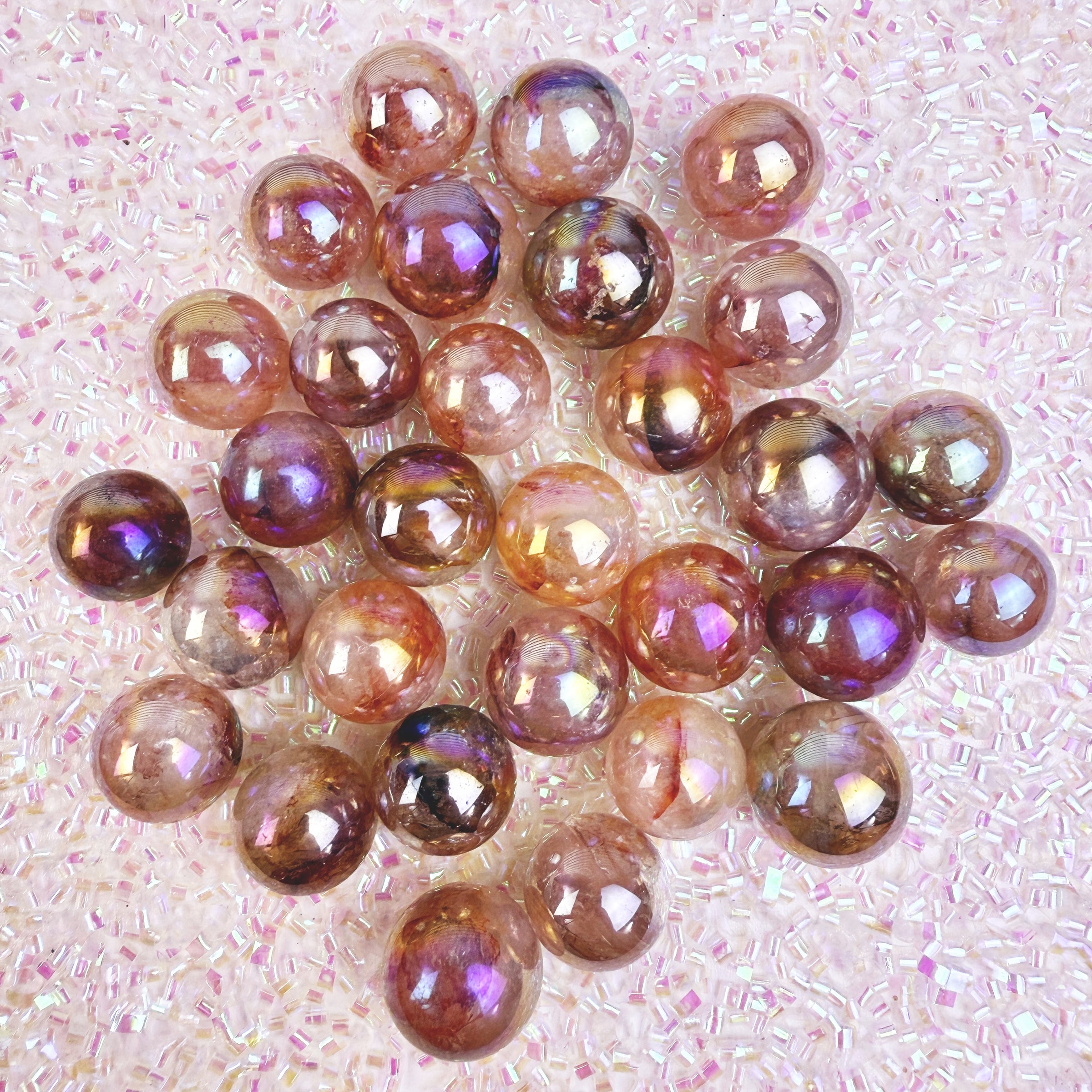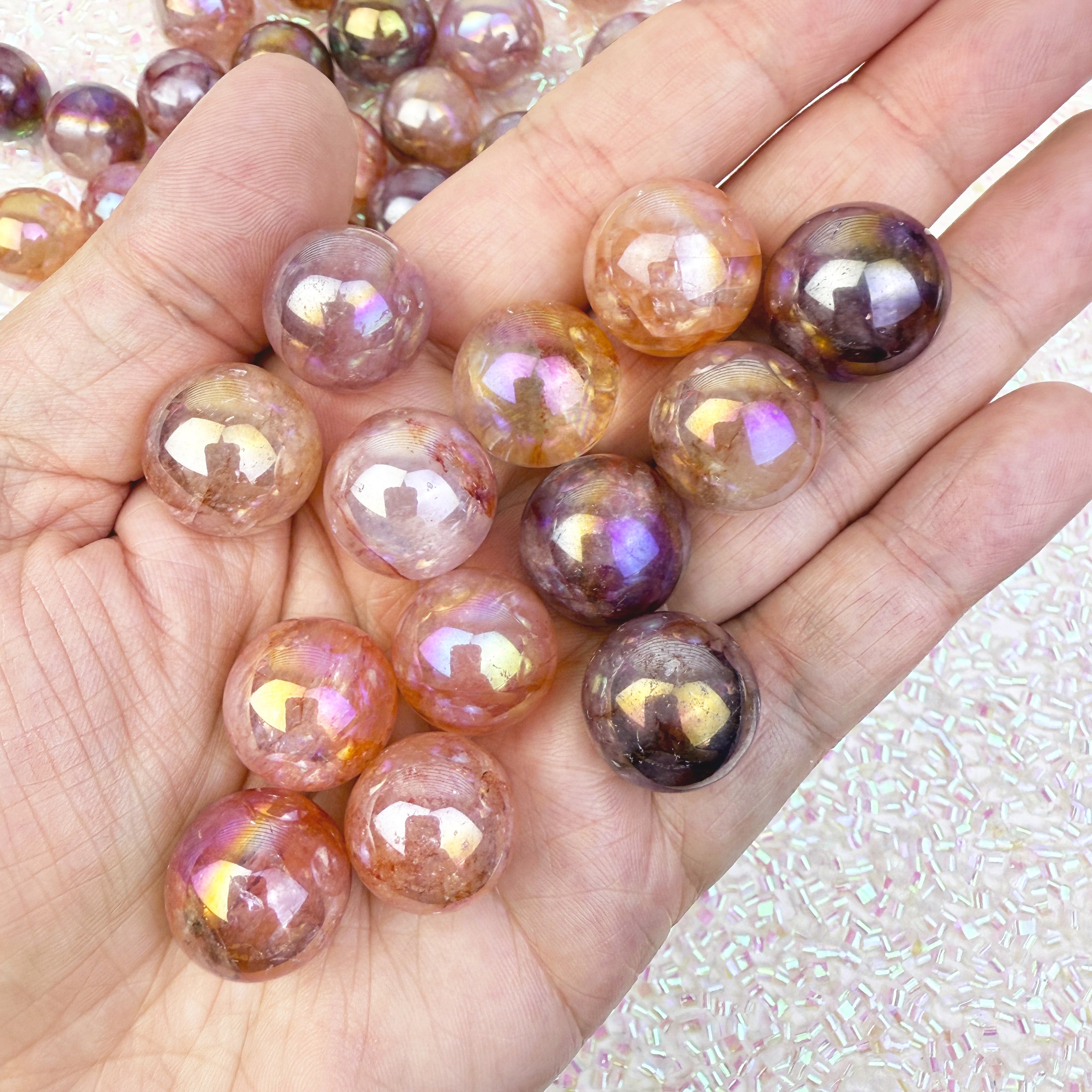 *Note* Fire Quartz is a natural crystal, and the beautiful rainbow aura is a man-made effect that is added afterward!