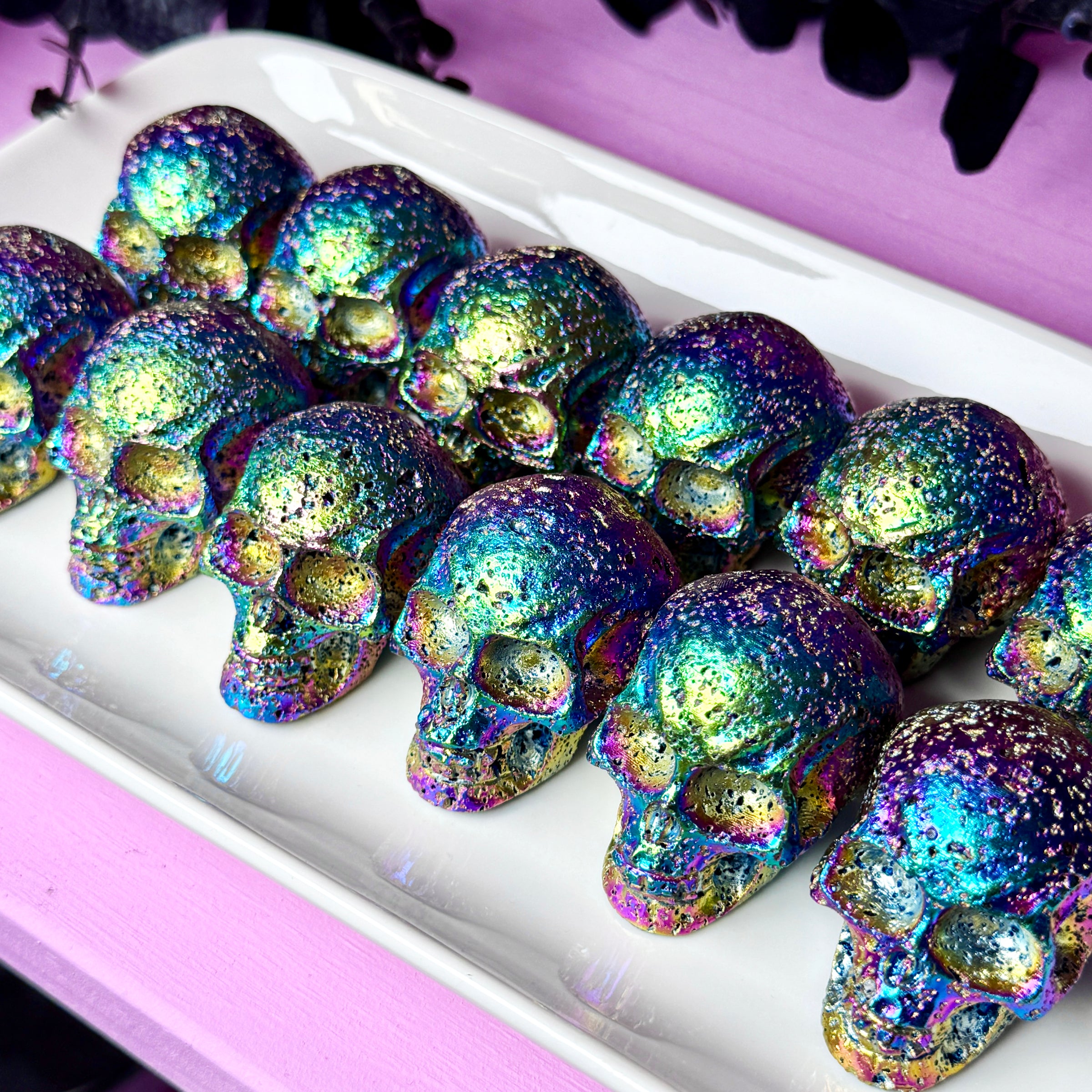 *Note* Lava Stone is a natural crystal, and the beautiful rainbow aura is a man-made effect that is added afterward!