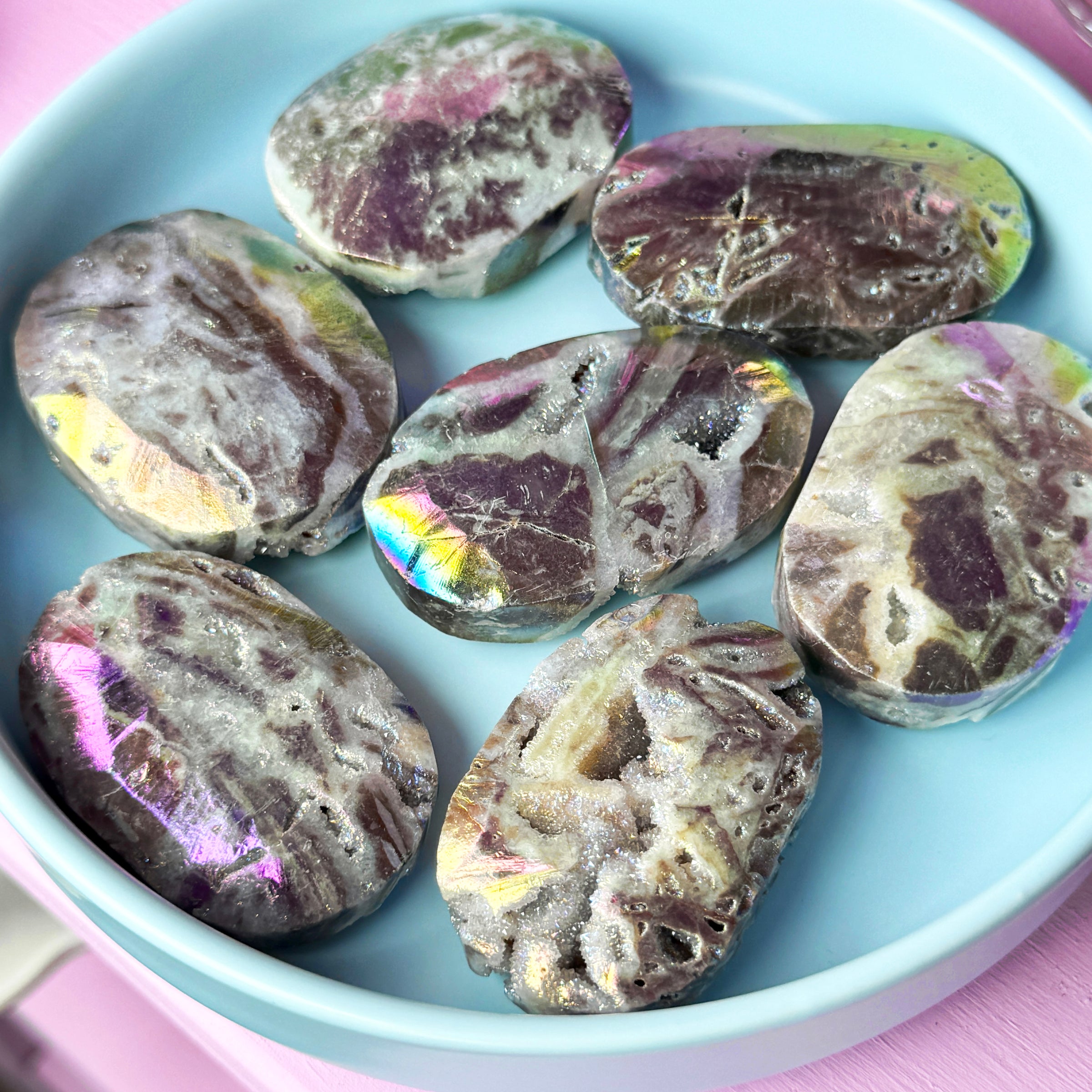 *Note* Sphalerite is a natural crystal, and the beautiful rainbow aura is a man-made effect that is added afterward!