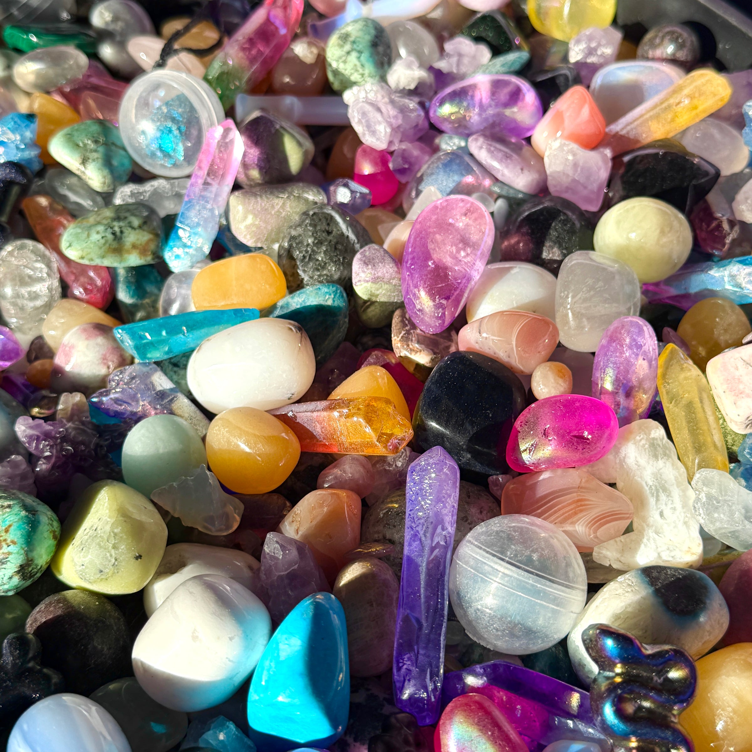 *Note* Aura crystals have a beautiful man-made rainbow effect that is added to natural stones. Some are also natural stones that are dyed bright colors. And Bismuth, Opalite, and Sandstone are popular man-made crystals! The others are all natural ♡