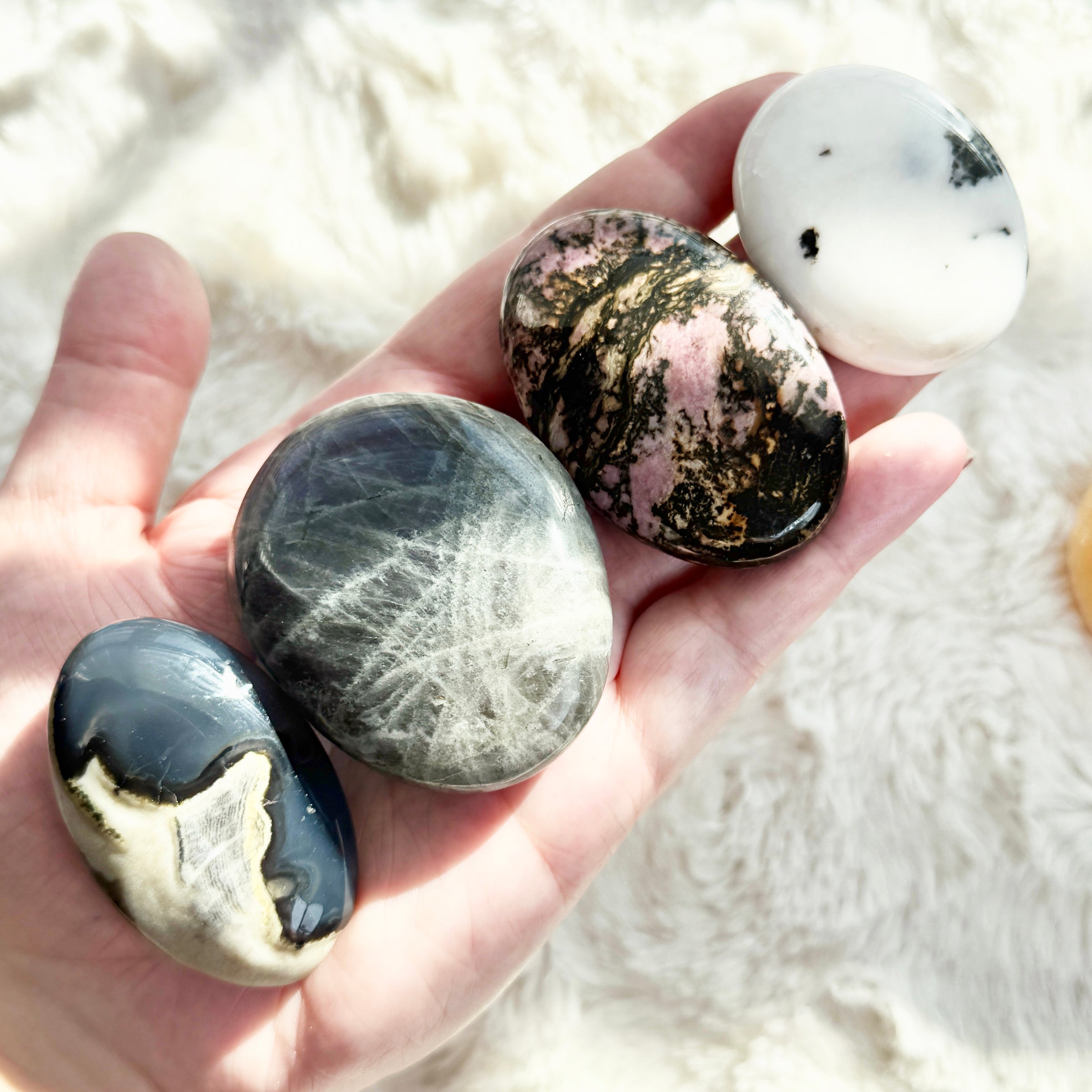 THREE mystery misfit palm stones for $12! These have imperfections but are still beautiful and usable ♡ ♡ ♡